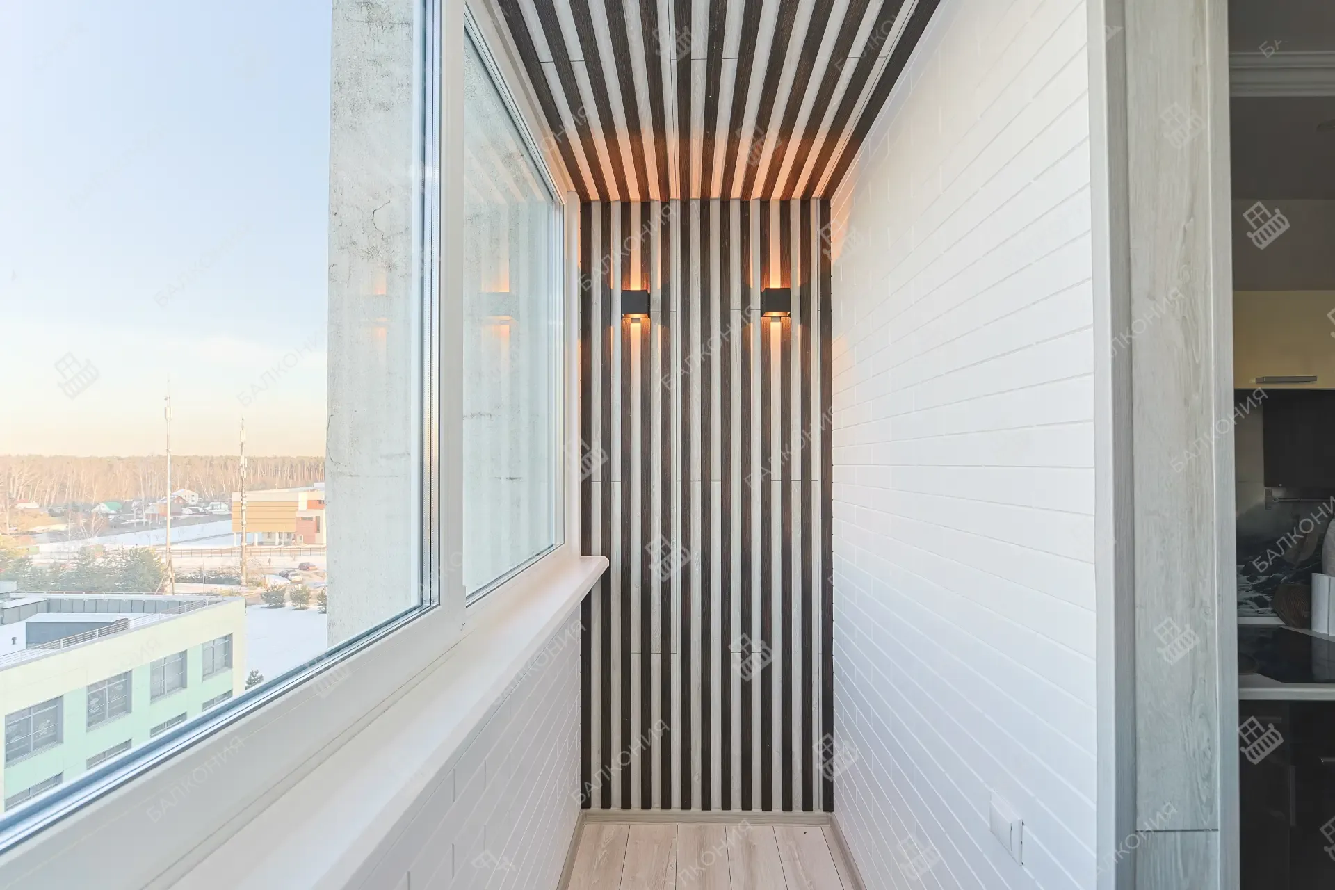 Для внутреннего оформления используем ПВХ-панели, вагонку или ламинат; потолки делаем натяжными или пластиковыми. По желанию клиента выводим электрику, устанавливаем освещение и тёплый пол. Снаружи обшиваем балкон профлистом или сайдингом, подбирая цвет под фасад.