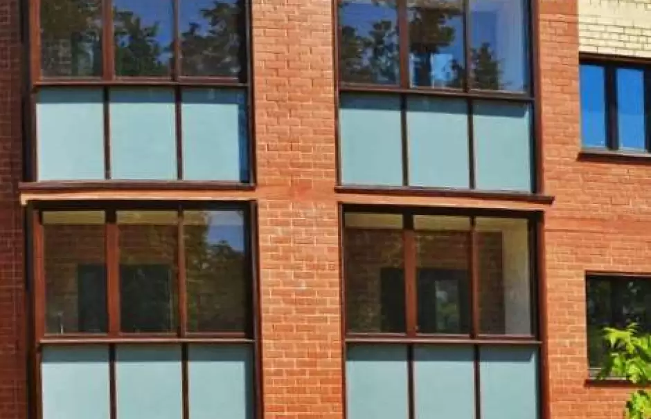 В доме проводилось остекление алюминиевым профилем в нескольких квартирах. Тип остекления - холодный, рамы по требованию застройщика были ламинированы в коричневый цвет. Раздвижной тип открывания всех створок блока. Монтаж выполнен за 4 дня. Работы по остеклению включали: